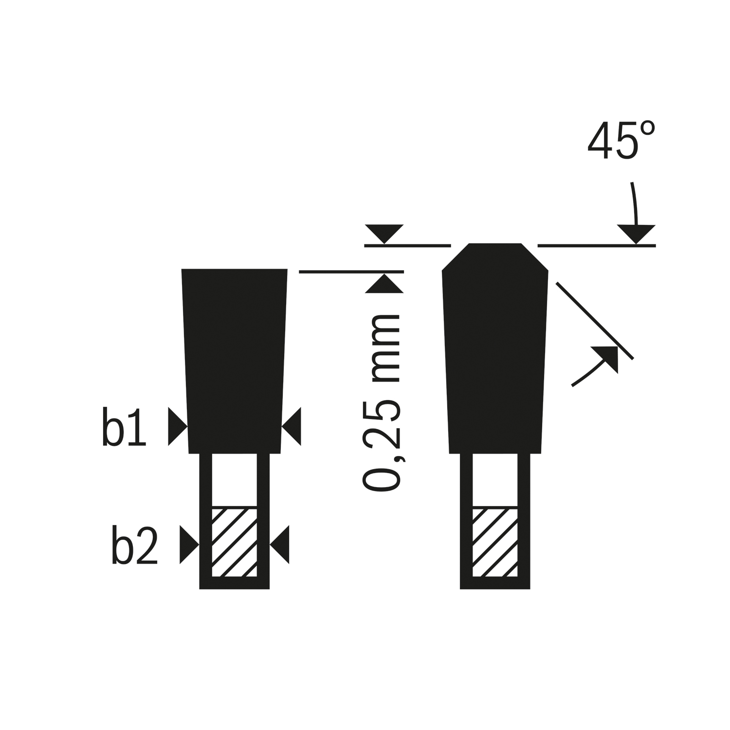 Szczegóły Średnica zewnętrzna mm 190 Otwór mm 20 Otwór z pierścieniem redukcyjnym mm 16 Szerokość cięcia (b1) mm / grubość korpusu (b2) mm 2,2/1,6 Liczba zębów 54 Kształt zębów TCG Maks. prędkość obrotowa (obr./min) 8000 Rezultat cięcia Bardzo dokładne cięcie Kąt natarcia ° α 5 Kąt przyłożenia ° β 13 - 2608644390